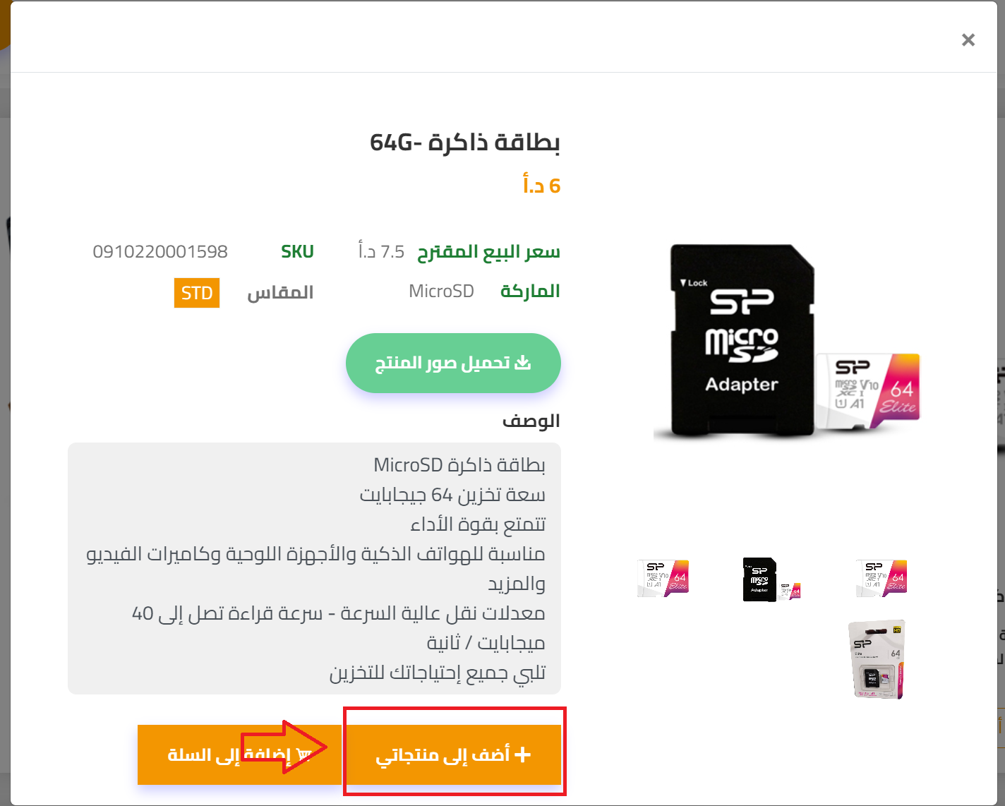 2. او من الخارج اضغط على أضف إلى منتجاتي