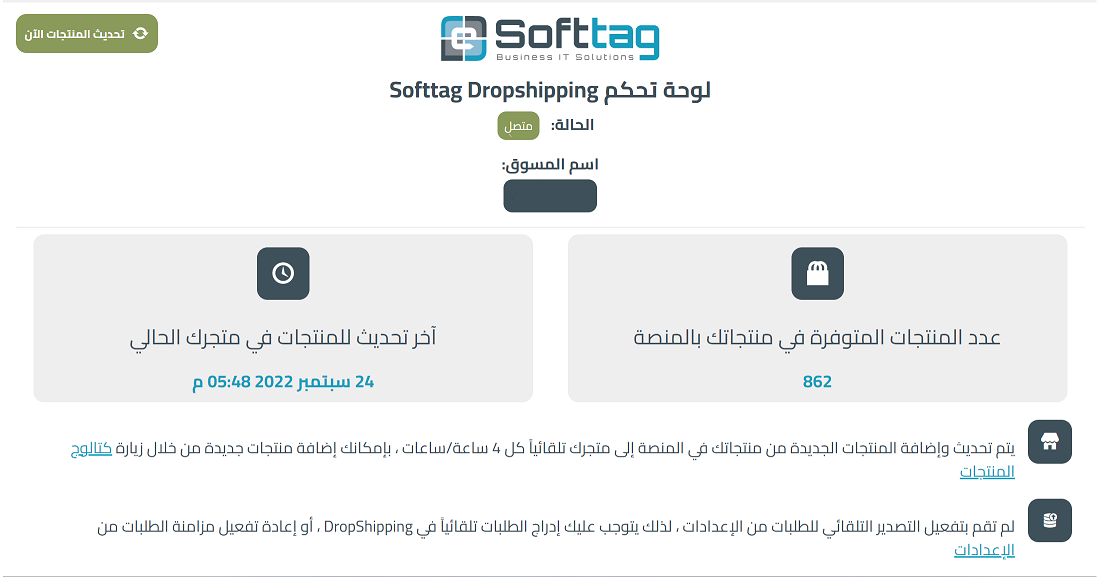 لجلب المنتجات الى المتجر يوجد خيارين1. انتقل الى لوحة التحكم واختر تحديث المنتجات الآن